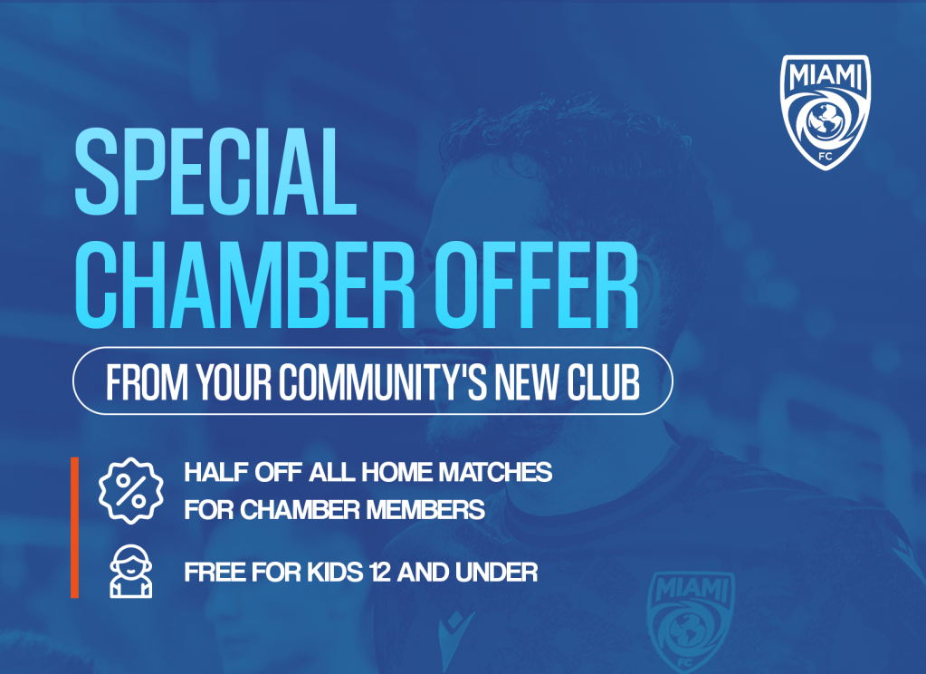 Miami FC Chamber Offer Miami FC is excited to invite the Chamber members to our 2026 home matches! Click the link below to redeem your half-off tickets for all Chamber members and free for kids 12 and under. SECURE YOUR TICKETS NOW